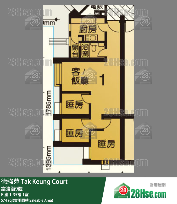 574 平方尺 ( 53.3 平方米 )