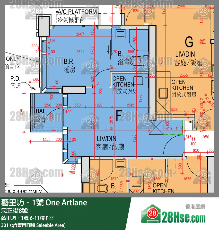 301 平方尺 ( 28.0 平方米 )