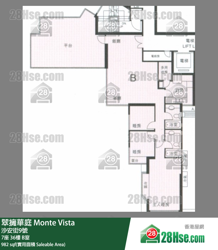 982 平方尺 ( 91.2 平方米 )