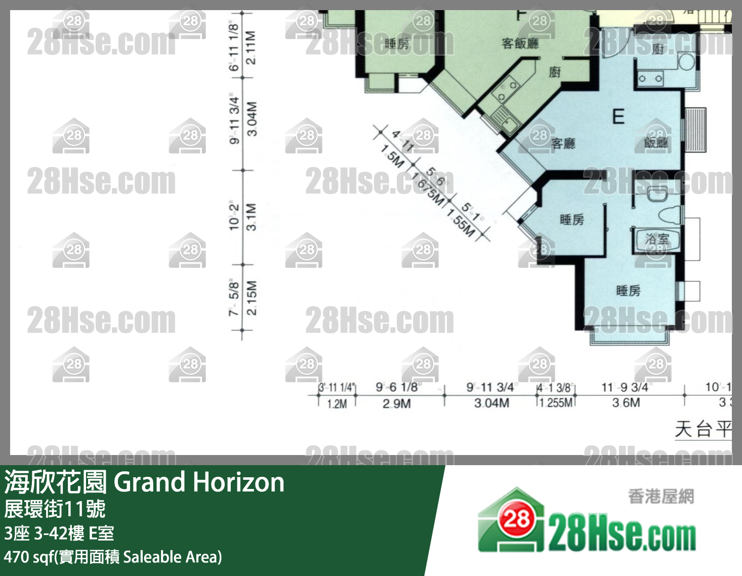 470 平方尺 ( 43.7 平方米 )