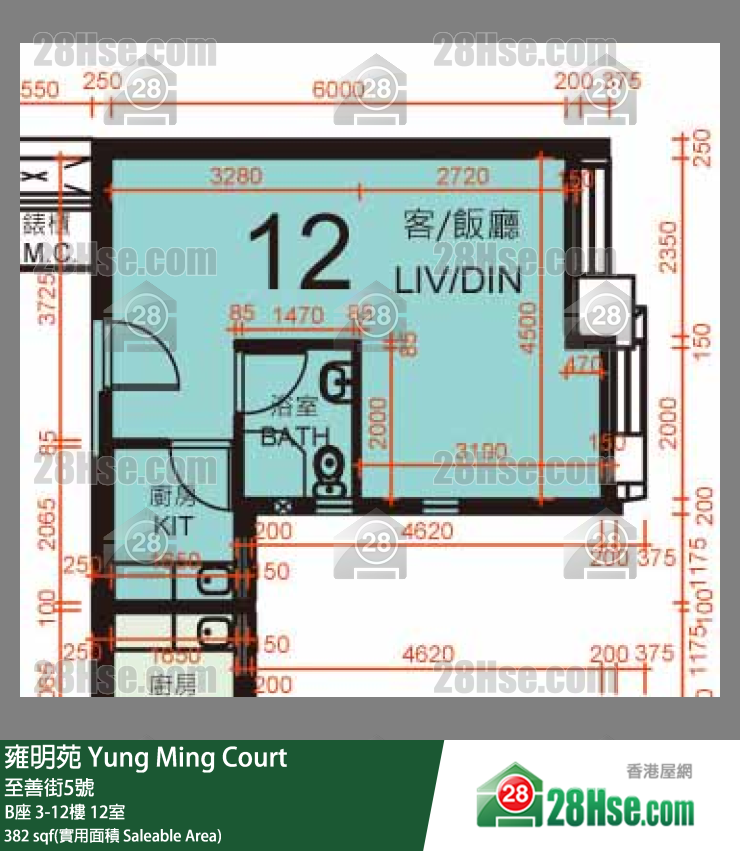 382 平方尺 ( 35.5 平方米 )