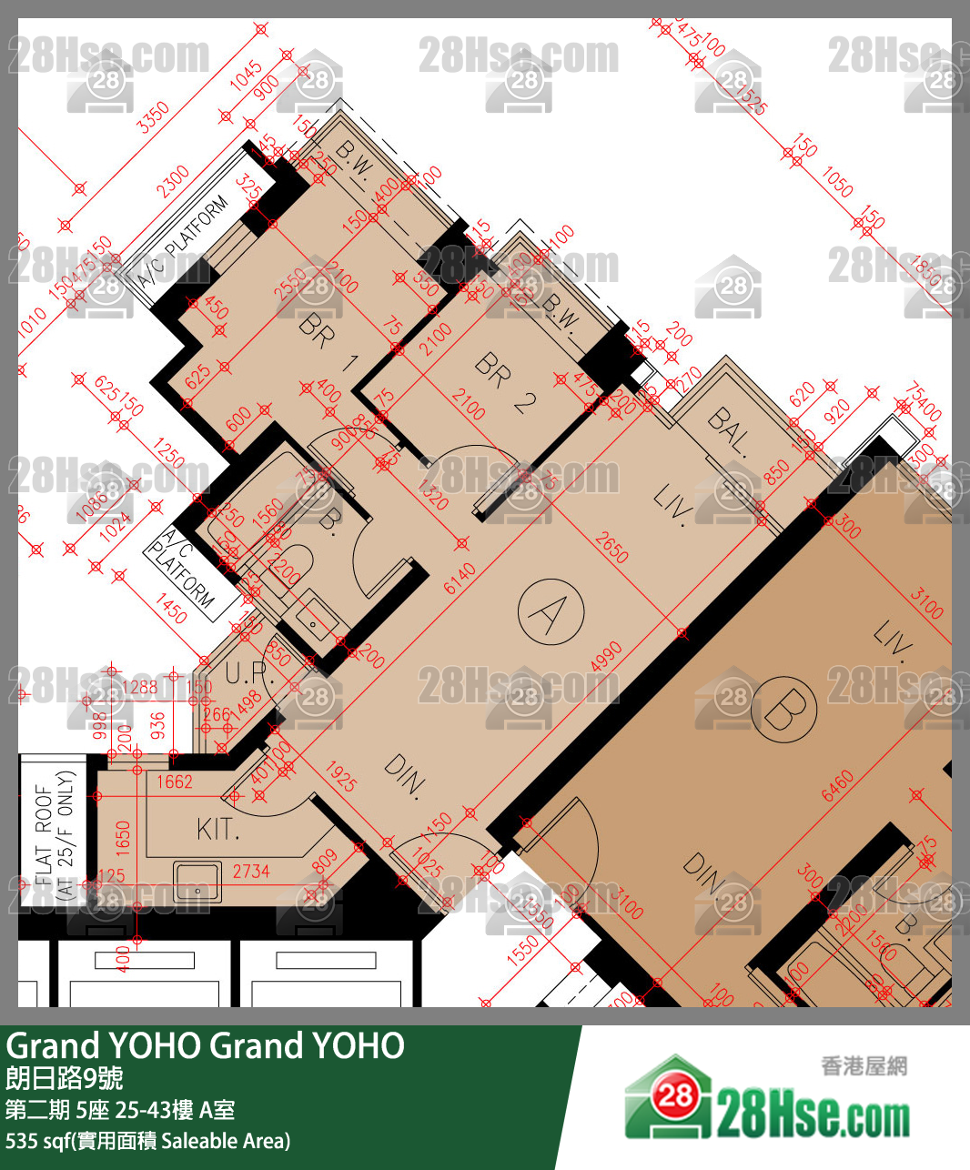 535 平方尺 ( 49.7 平方米 )