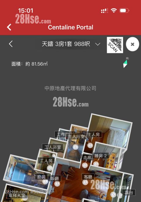 988 平方尺 ( 91.8 平方米 )