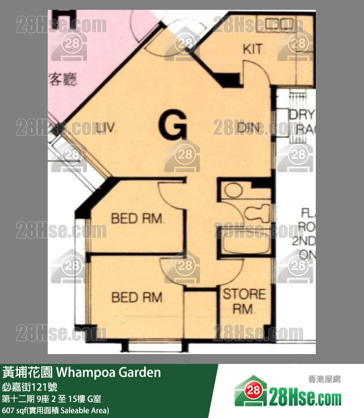 607 平方尺 ( 56.4 平方米 )