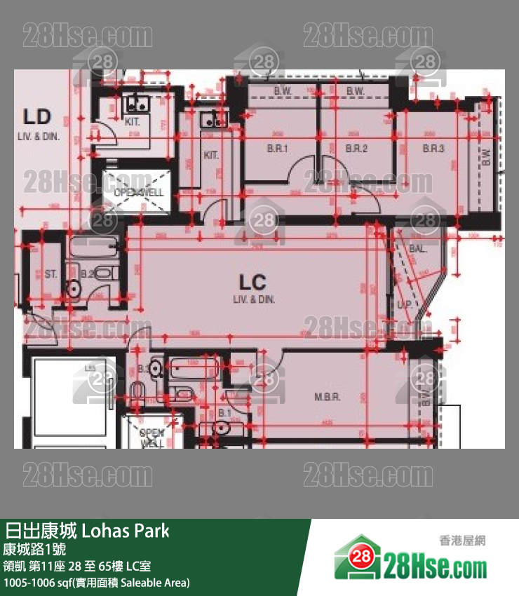 1,005 平方尺 ( 93.4 平方米 )