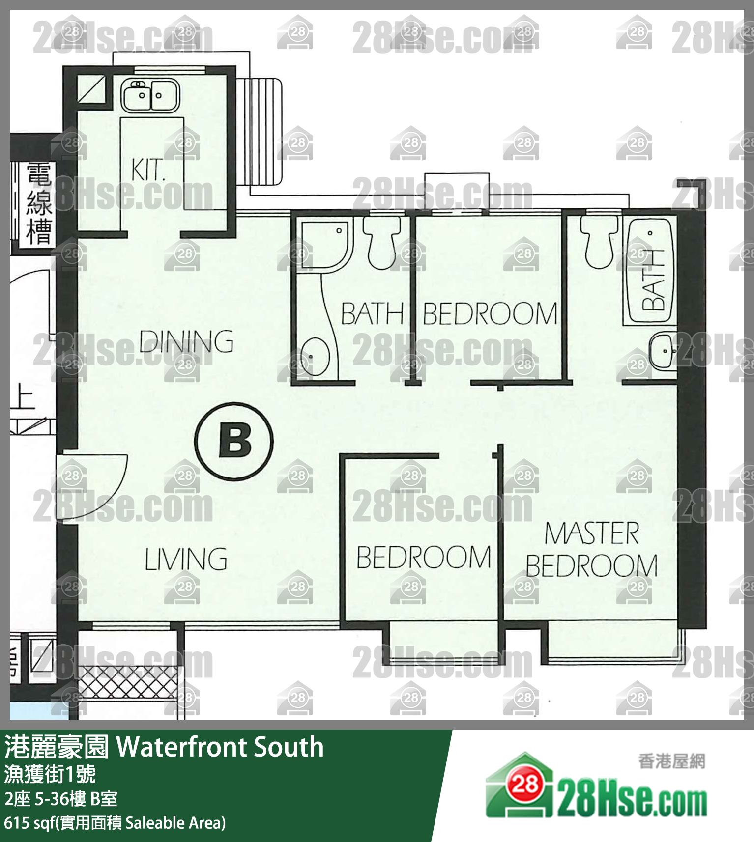 615 ft² ( 57.1 m² )