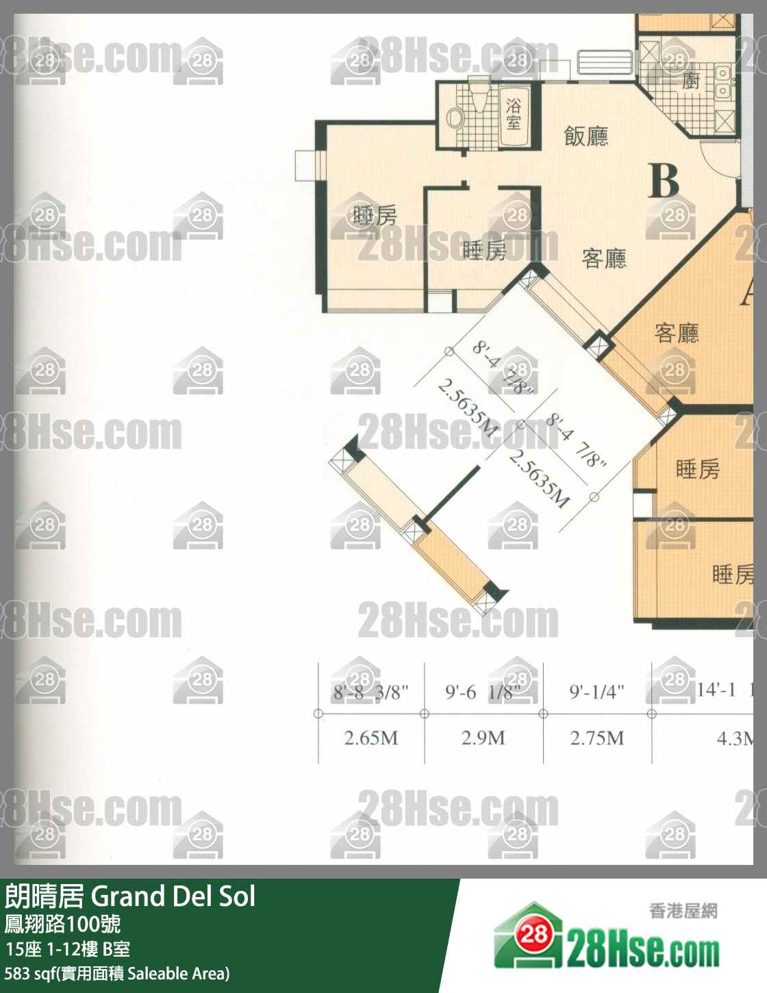 583 ft² ( 54.2 m² )