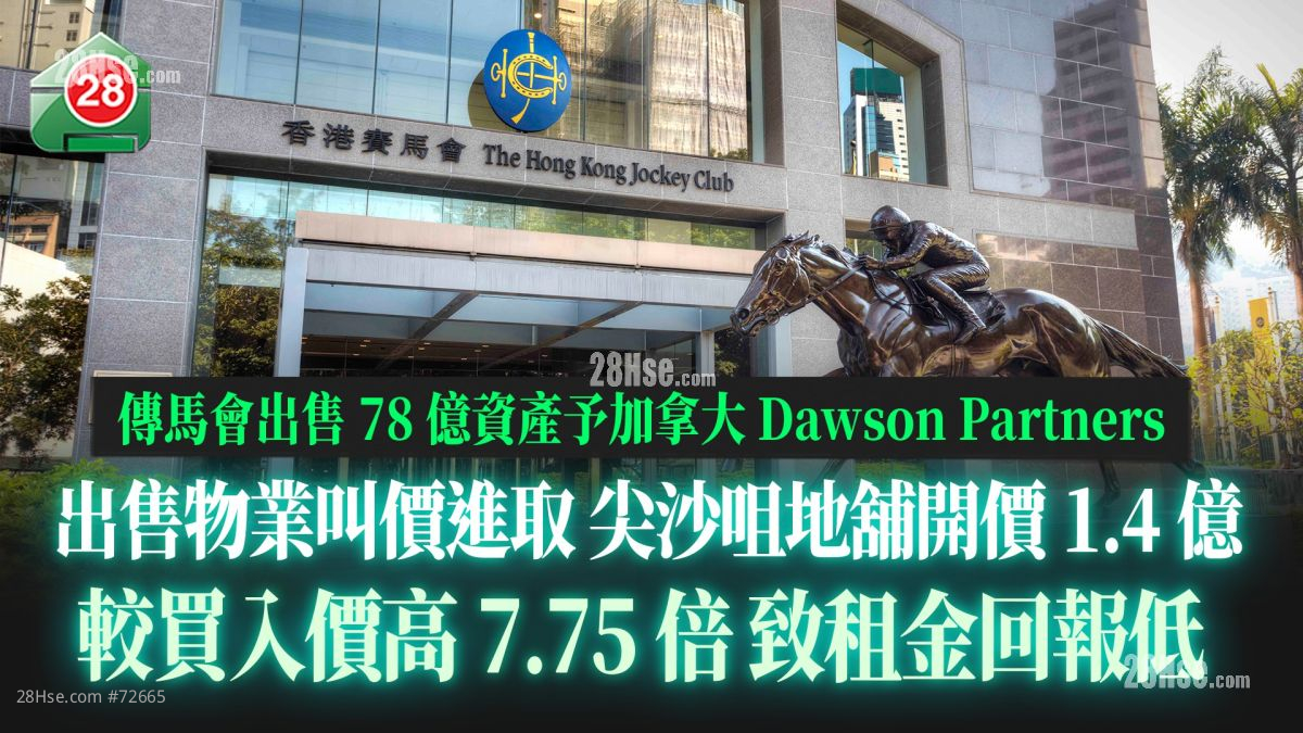 此外,近年赛马会在香港的物业放售节奏渐趋活跃,惟业界指叫价进取。以尖沙咀柯士甸道地铺为例,赛马会近年放售曾自用作投注站的尖沙咀柯士甸道124号帝宝楼地下A及B号铺位,合共面积约3,000平方尺,意向价高达1.4亿元,业界认为要价甚高,令铺位租金回报偏低。该铺最新以每月约14.2万元租予火锅店,折合尺租约47.3元,租金回报仅约1.2厘。