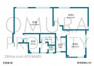 813 平方尺 ( 75.5 平方米 )