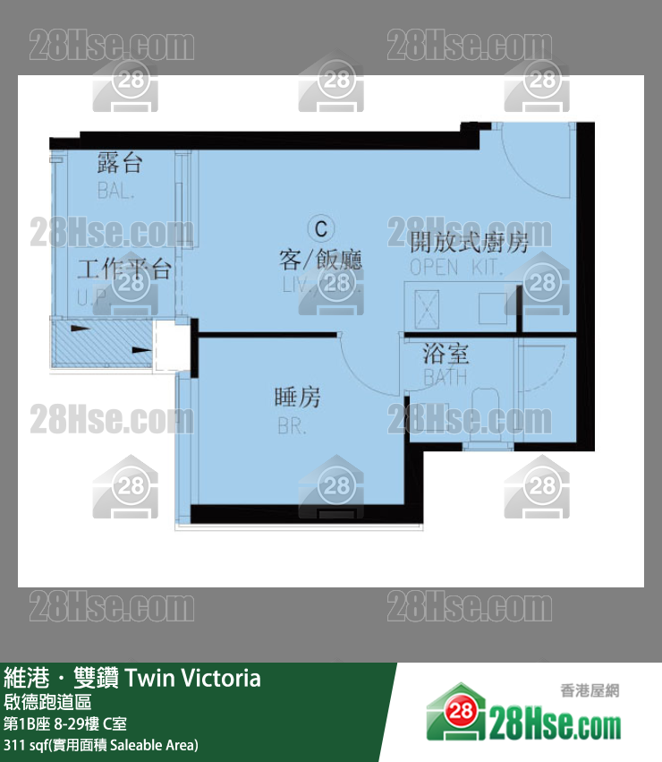 311 平方尺 ( 28.9 平方米 )