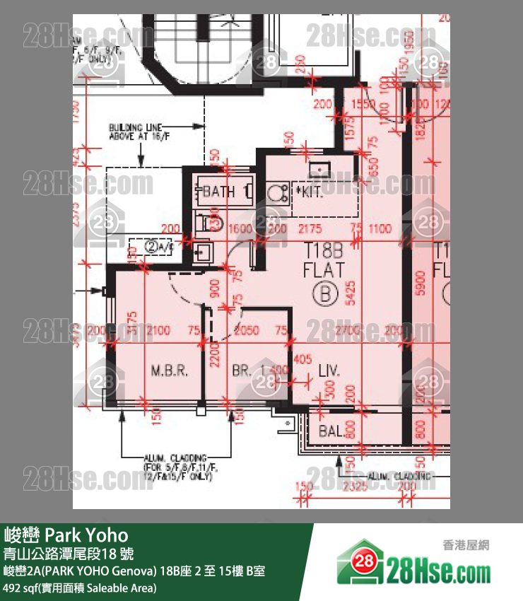 座数及单位: 峻峦2A(PARK YOHO Genova) 18B座 中层 B室