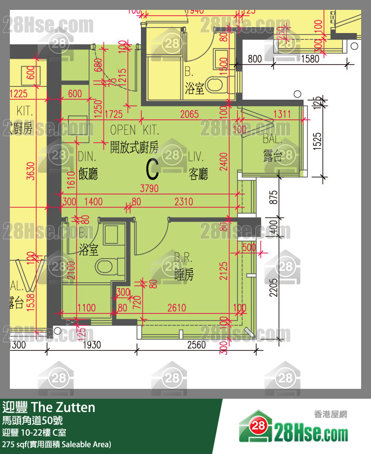 275 平方尺 ( 25.5 平方米 )