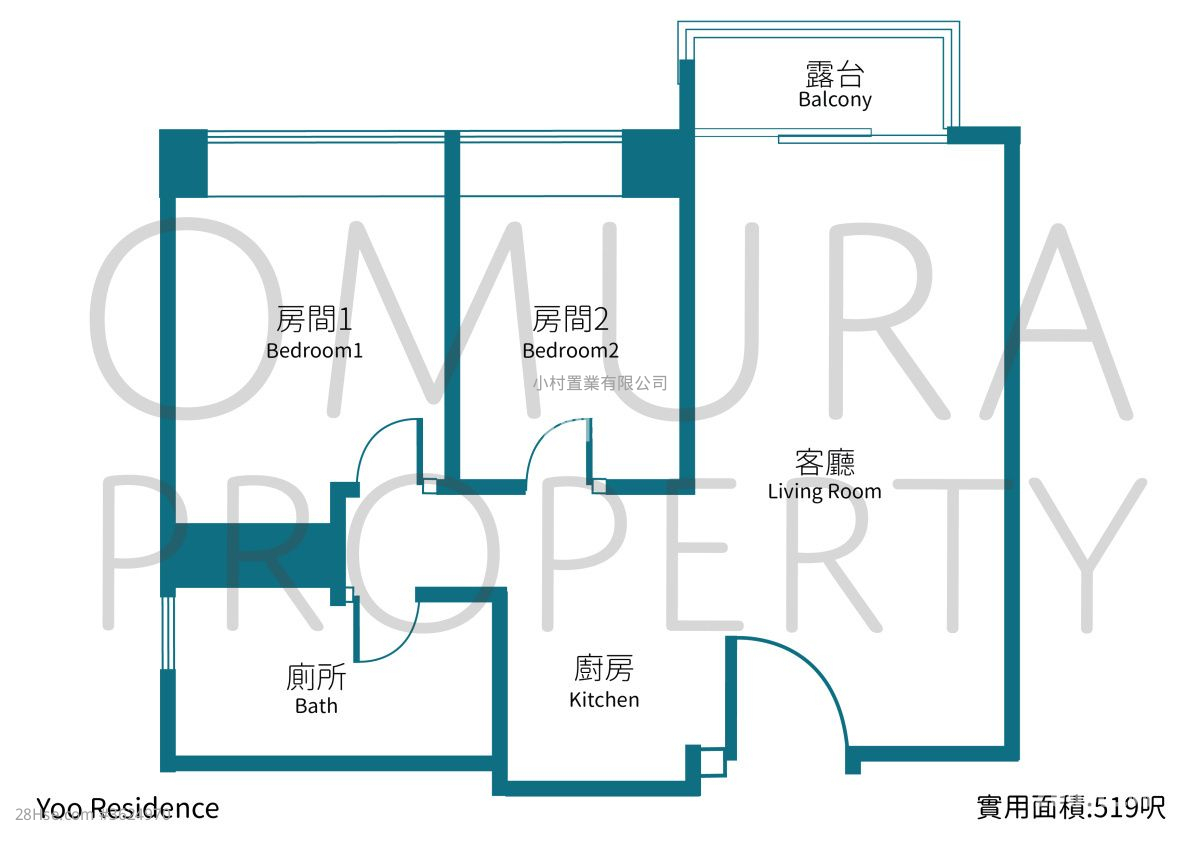 520 平方尺 ( 48.3 平方米 )