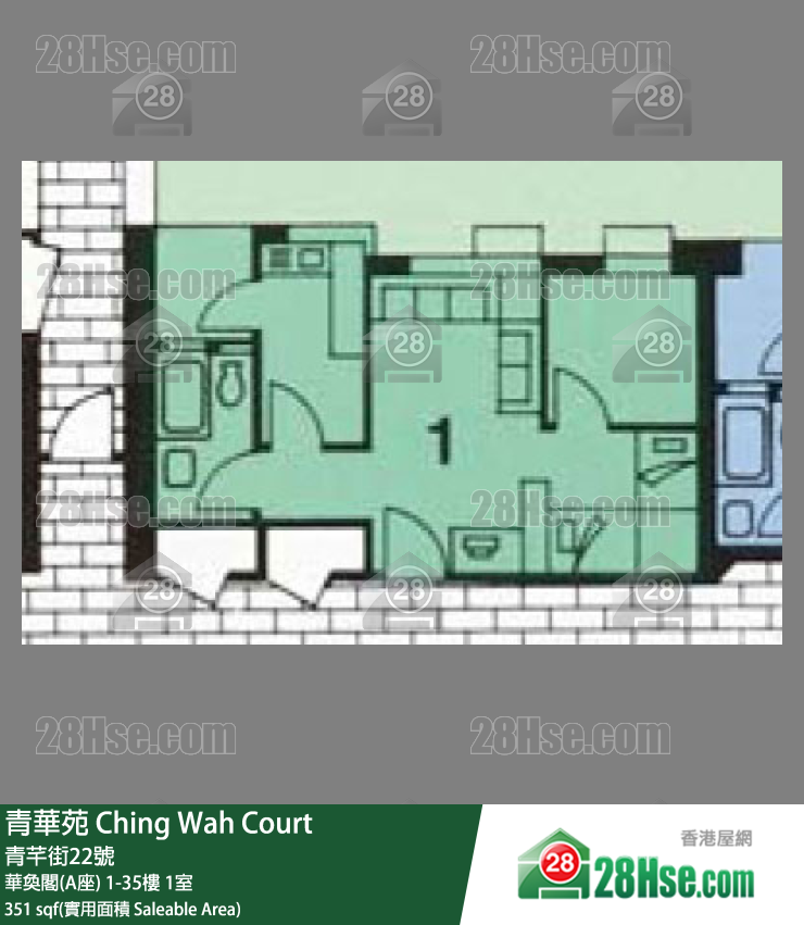 351 平方尺 ( 32.6 平方米 )