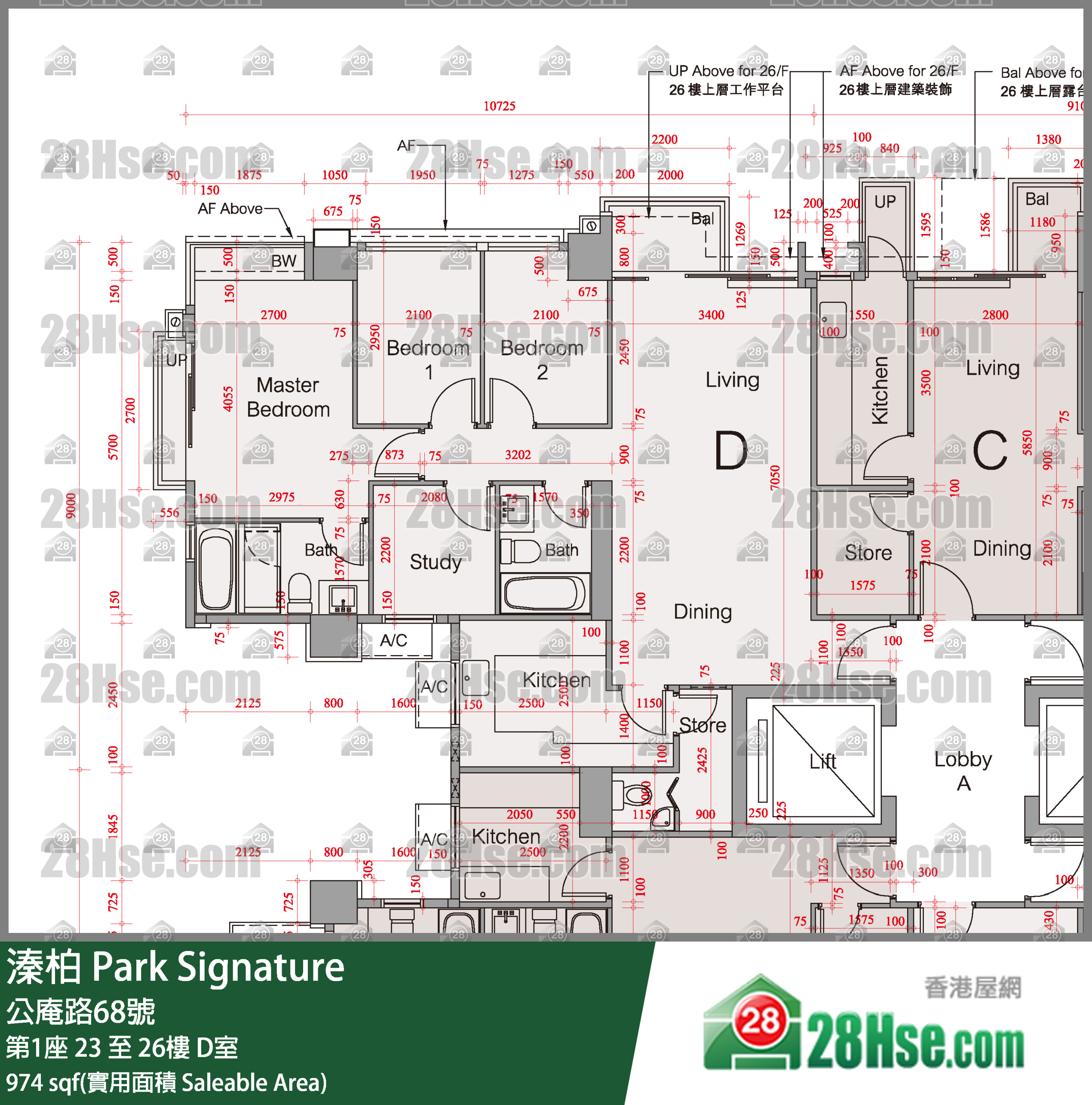 974 平方尺 ( 90.5 平方米 )