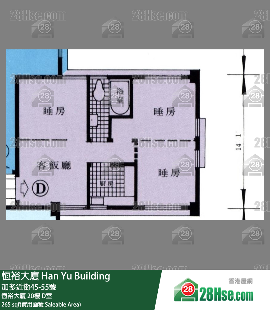 座数及单位: 恒裕大厦 高层 D室